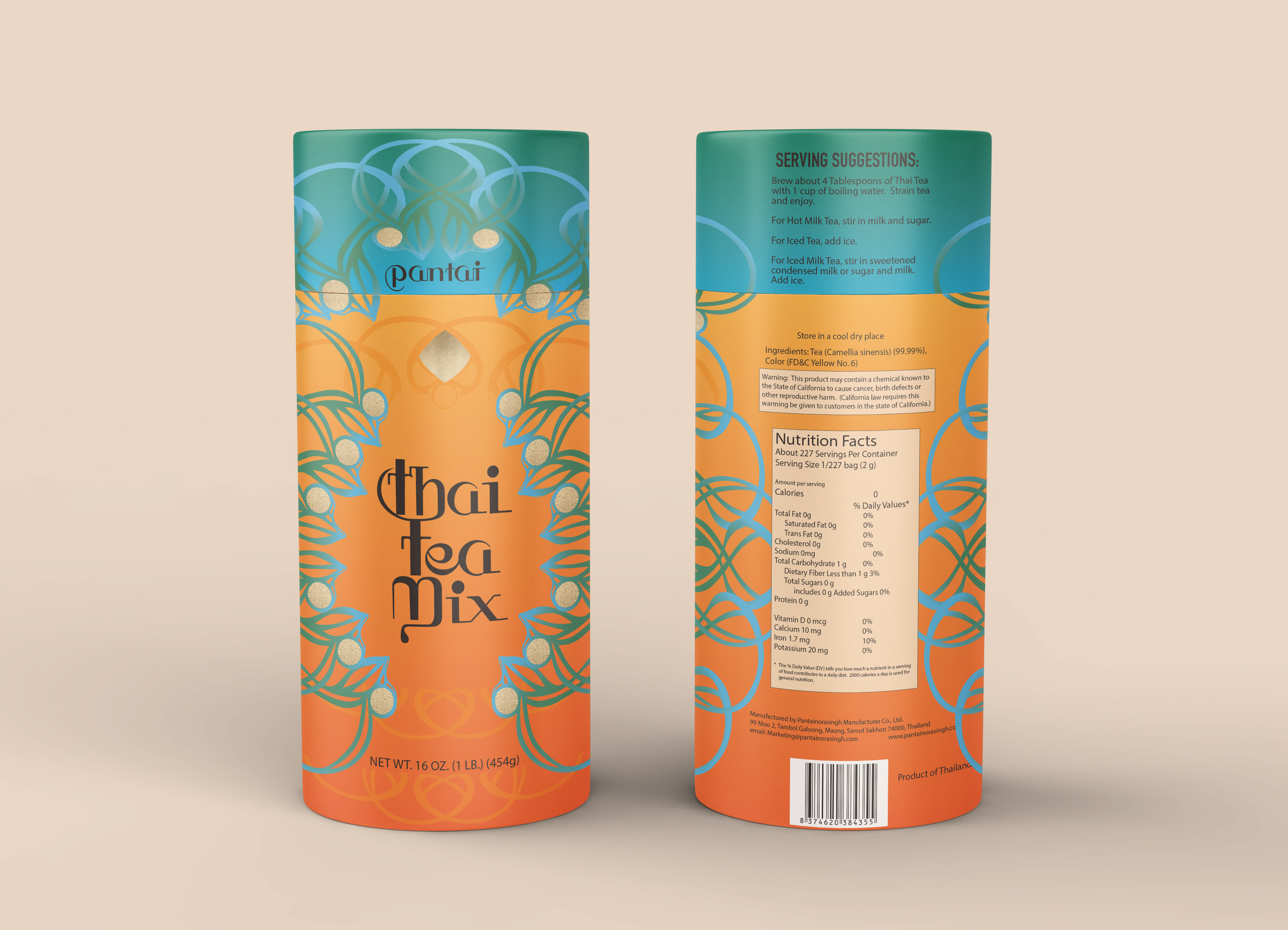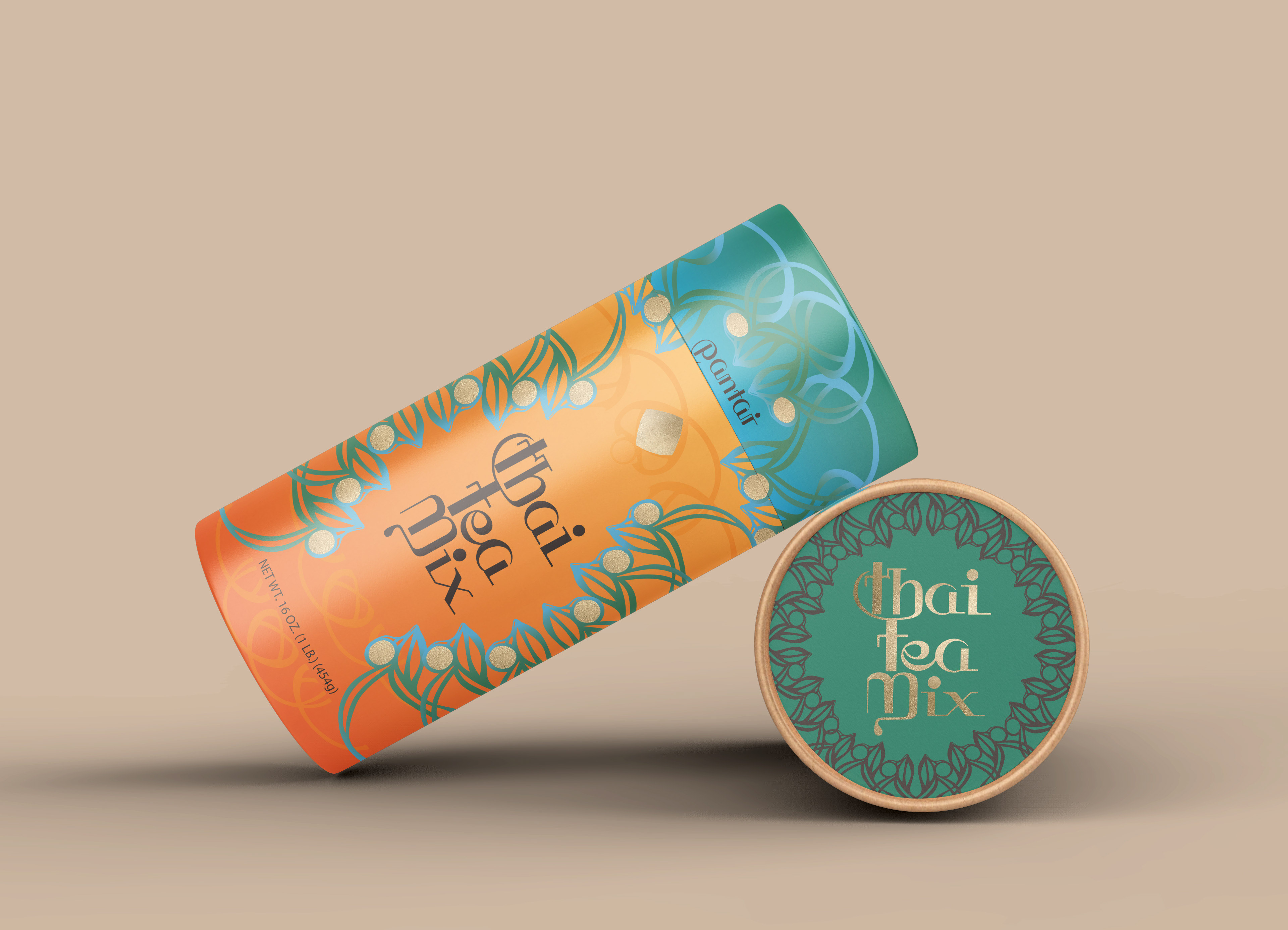 For the package redesign, I elevated the design by putting the tea in a cardboard tube. The colors, design and gold foil add a touch of Thailand to the package.